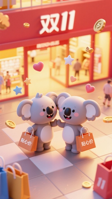 双11|谐音梗“贴心价“3d卡通爱心主视觉