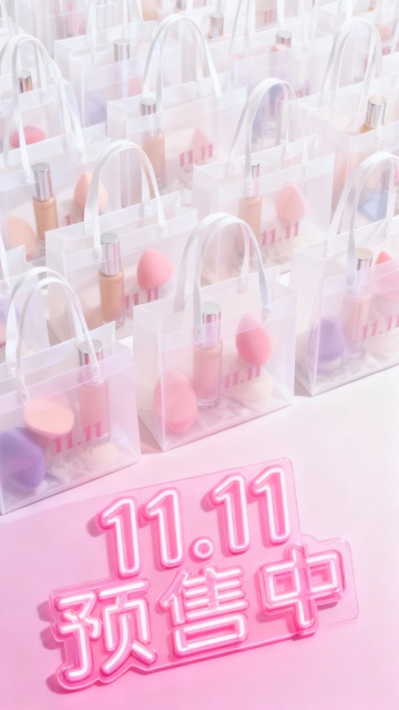 3D轻拟物风,几何拼贴盒体搭配柔和色块,呈现甜蜜清新感,塑料质感瓶身悬浮其中,孟菲斯风格点缀,11.11节日氛围浓厚。