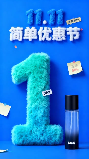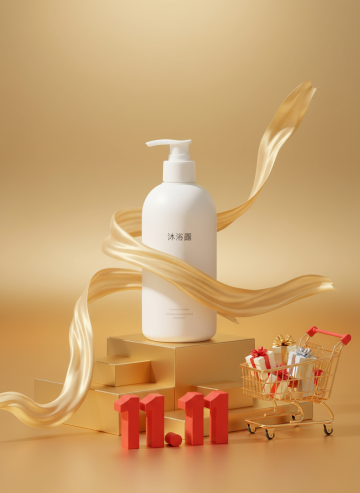 梦幻软3D风格,云朵托举护肤瓶,霓虹灯字“11.11抢先go”,气球、红包与金币环绕,甜蜜喜庆,充气感毛发生长元素营造轻盈双11促销氛围。
