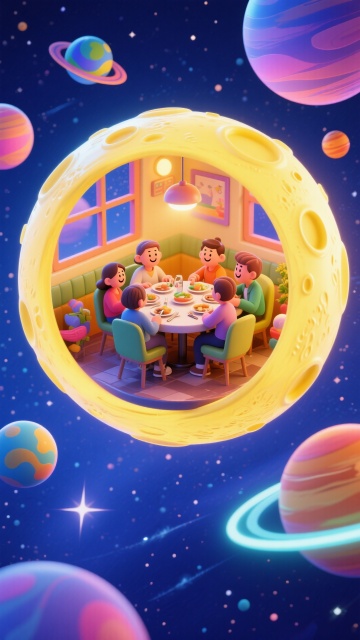 一幅梦幻的插画,深邃神秘的暗紫色星空背景,点缀着闪烁的星辰和流动的星云,中心是一颗充满奇幻色彩的星球,星球表面覆盖着深浅不一的蓝绿色区域,仿佛神秘的海洋和森林,点缀着白色的云朵和漂浮的岛屿,岛屿上有色彩斑斓的小房子和奇形怪状的树木,星球周围环绕着发光的光环和几颗大小不一、颜色各异的行星,整个画面充满了童话般的奇幻氛围,色彩浓郁而和谐,光影效果柔和梦幻,构图饱满且富有层次感。