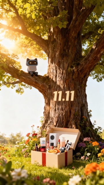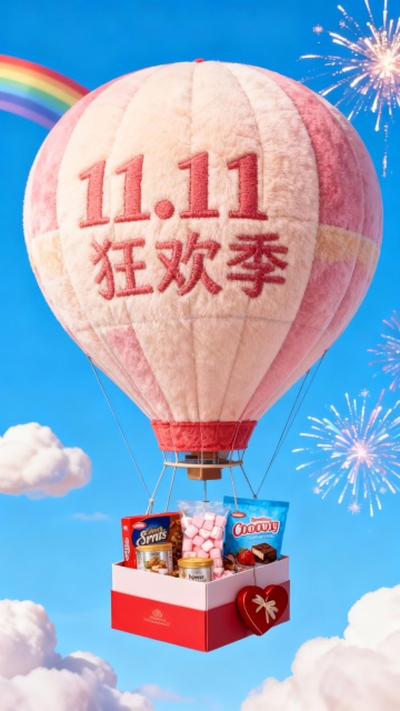 梦幻感3D微缩艺术风,玻璃瓶内藏迷你超市,水彩风自然场景,蝴蝶飞舞,双11零食节主题,清新甜美可爱趣味十足。