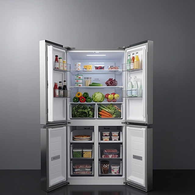 未来感与科技感交融的3D工业风厨房,重拟物金属质感冰箱居中,冷光线条勾勒空间,展现智能家电的极致美学。详情