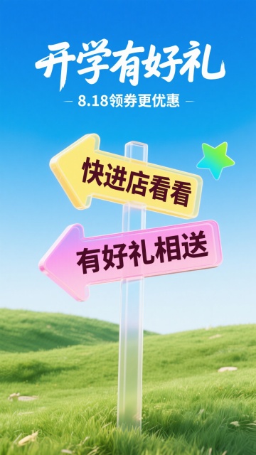 软3D风促销海报,甜美可爱,霓虹灯效果,塑料质感字体,新品低至5折。