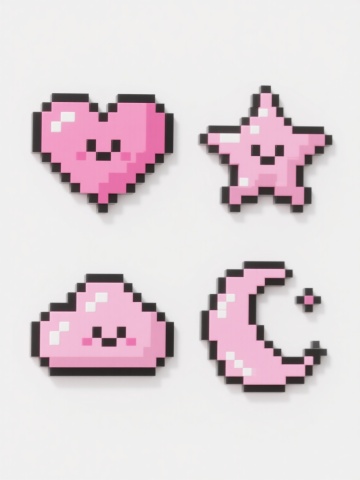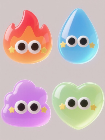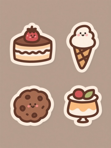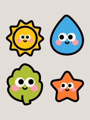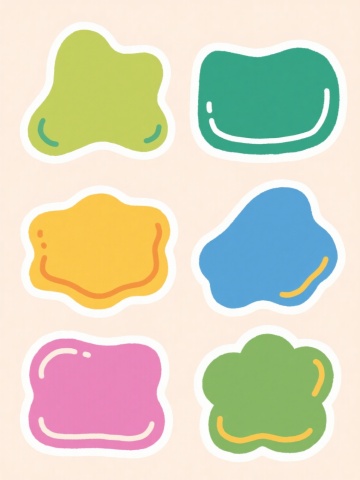 一套四个不同元素的系列素材集合,每个元素均采用扁平风格设计,线条简洁圆润,色彩鲜明饱和,规整排布于纯色背景上。第一个元素是生日蛋糕,绿色边框白色奶油,顶部插着红色带绿色条纹的点燃蜡烛,周围有黄色星星和彩色线条装饰;第二个元素是礼物盒,蓝色方形盒子配红色蝴蝶结,盒身有白色圆点图案,周围点缀橙色五角星和弧线;第三个元素是派对帽,黄色锥形帽顶有红色绒球,帽身有蓝色波浪条纹,周围环绕绿色圆点和短线;第四个元素是气球,粉色圆形气球系着紫色绳子,气球上有黄色笑脸,周围分布橙色螺旋线和蓝色小点。所有元素均保持一致的可爱卡通风格,表情生动,构图均衡,色彩搭配协调且每个元素整体色彩各不相同,形成系列感。