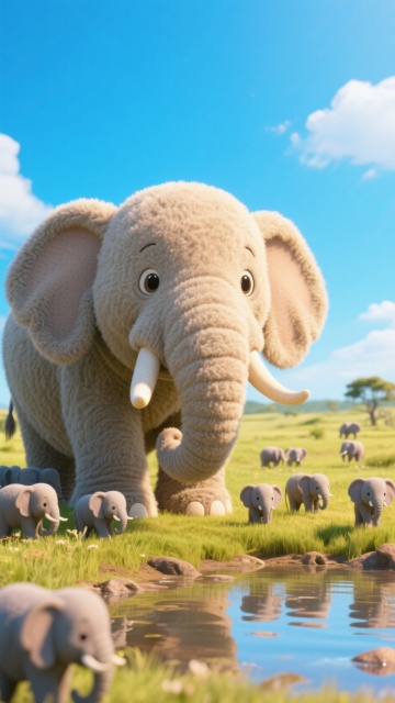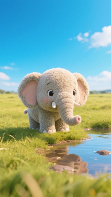 Q版厨师大象IP,厨房场景开心表情:蓝色身体戴厨师帽,手持锅铲,背景有灶台和调料瓶,眼睛弯成月牙,脸颊带红晕;餐厅场景惊讶表情:蓝色大象端着餐盘,瞪大眼睛呈O型嘴,背景有餐桌餐椅;采购场景专注表情:蓝色大象推购物车,低头看食材,眼神专注,背景有蔬菜货架。保持Q版卡通风格,蓝白橙配色,线条圆润。