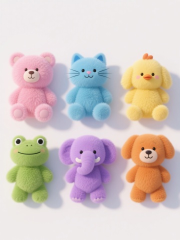 一个可爱的毛绒玩具,整体造型圆润,色彩柔和,材质看起来柔软蓬松,表面有细密的绒毛质感,细节丰富,光影自然