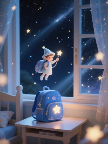 梦幻感十足的软3D风格插画,可爱卡通女孩在发光字母小径上跳跃,融合音乐、绘画元素,营造童趣微缩艺术世界,节日氛围温馨治愈。