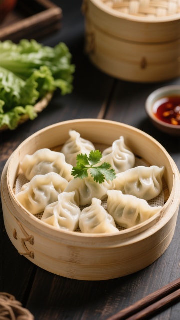 发面制作的小笼包,6只整齐摆放在蒸笼里,包子皮蓬松暄软,表面有自然的褶皱,透出淡淡的麦香,热气腾腾,展现出发面特有的松软质感