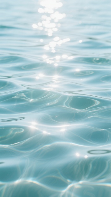 清澈透明的水面,阳光照射下波光粼粼,水面上有细腻而富有动感的波纹,波纹呈现出柔和的曲线形态,整体画面具有写实的质感,光影效果明亮自然,高光部分闪耀着白色的光芒,阴影部分则呈现出深邃的颜色,色彩改为深邃神秘的深蓝色调,蓝色由浅至深自然过渡,营造出宁静而富有层次感的氛围,没有任何文字、LOGO、二维码及地址信息。