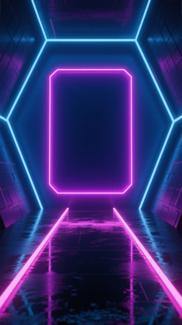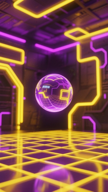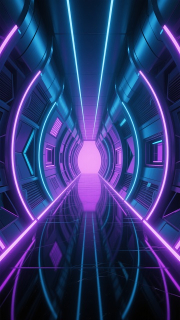 未来感十足的3D赛博朋克风卧室,金属质感与霓虹灯辉映,重拟物设计呈现梦幻科技空间。