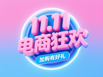 赛博朋克风霓虹灯管打造的3D数字“11.11”,玻璃质感与重拟物设计结合,未来感十足,充满科技与酷炫感,营造双十一促销狂欢氛围。
