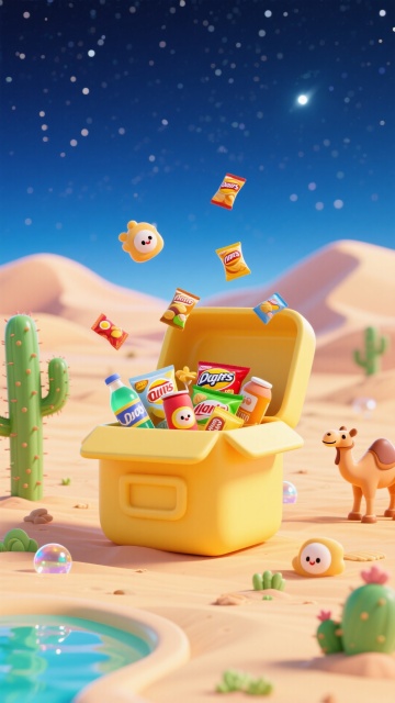 软3D风格的拟人榴莲,萌趣十足,手持购物袋奔跑,充满卡通感与趣味感,表示“流连忘返”,明亮色彩呼应节日欢庆氛围。