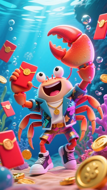 软3D风拟人螃蟹萌趣登场,毛发生长质感搭配粘土风市集,温馨卡通场景传递双11生鲜促销的可爱与趣味。