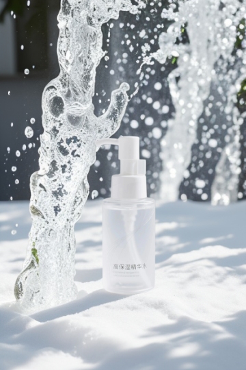 简约风格的水断面场景,清澈的水流从断面边缘涌出,形成轻盈的白色水花,浅色调背景,光线明亮柔和,画面简洁干净,突出水的透明质感和动态感