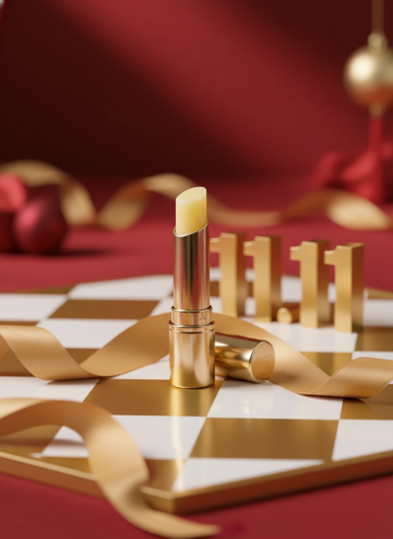 鎏金3D微缩艺术风,金属质感与优雅线条交织,展现奢华时尚的双十一护肤礼遇。