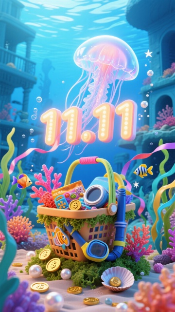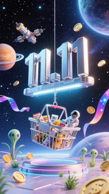 卡通3D|双11购物车悬浮感大促主视觉