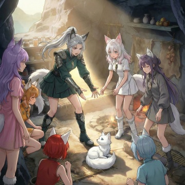 动漫风格,柔和过渡的蓝色与紫色渐变色调,柔和侧上方光源,细腻的数字绘画笔触,简约留白构图。一个拥有猫耳特征的女性角色,橙色眼眸,表情沉静,身着黑色为主的未来科技感战斗服饰,搭配蓝色披风,手持枪械,单膝跪地,一手撑地的动态姿势,银白色波浪长发自然垂落,整体画面营造出神秘而冷静的氛围,视觉焦点突出,线条流畅,细节精致,具有鲜明的二次元插画风格。