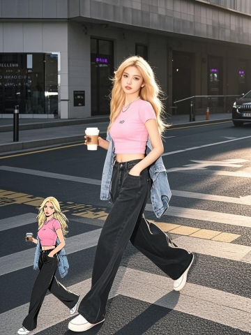 时尚潮流街拍,2D卡通拟人与3D真人混搭,展现独特创意风格。