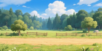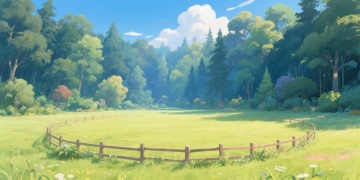 清新水彩插画风,绿意盎然的森林与草地,围栏蜿蜒,带来舒适自然之感。