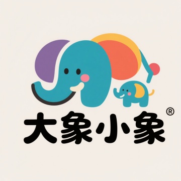 扁平风卡通大象母子形象,拟人化设计,色彩明快,几何简约,传递温馨趣味感,适合亲子主题节日使用。