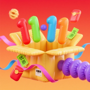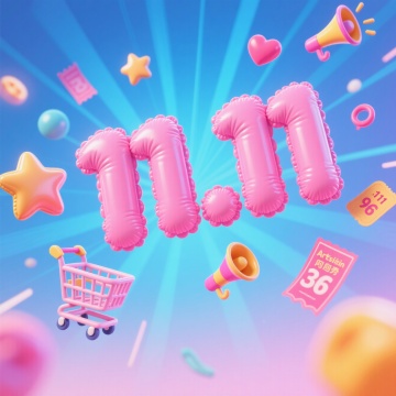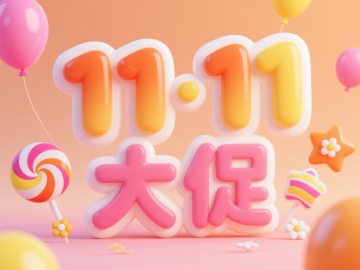 "11·11 狂欢季"艺术字,采用与原图一致的3D立体毛绒质感,绒毛蓬松柔软,边缘圆润可爱,字母结构保持厚实饱满的形态。整体配色改为暖色系背景,以温暖的橙色、柔和的黄色、温馨的粉色为主色调,色彩过渡自然和谐。文字周围点缀着多彩的气球和精致的花朵作为装饰元素,气球呈现轻盈飘逸的质感,花朵细节丰富,与毛绒文字风格统一。光影效果柔和,光源来自上方,在文字底部形成淡淡的阴影,增强立体感。整体画面营造出欢快、热烈、充满节日氛围的感觉,符合狂欢季的主题,视觉层次清晰,信息传达直接,设计风格活泼可爱,能有效吸引目标受众的注意力。