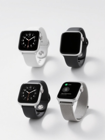 6款不同材质与造型的无线耳机及其充电盒组成的系列产品集合,在纯白色纯色背景上以规整的网格状排布。每款耳机都保留核心的入耳式耳塞与充电盒开合形态,但具有完全独特的设计造型:1. 高光泽钢琴漆材质,棱角分明的几何切割充电盒,耳塞表面有精细的菱形切割纹路;2. 哑光磨砂金属材质,圆润流畅的鹅卵石造型充电盒,耳塞带有金属网面装饰;3. 透明亚克力材质,半透明充电盒可看到内部结构,耳塞采用渐变色彩设计;4. 编织纹理布艺包裹材质,方形充电盒带有缝线细节,耳塞表面有细密的针织纹路;5. 木质纹理材质,圆角矩形充电盒搭配原木色,耳塞表面有自然木纹肌理;6. 荧光霓虹材质,不规则多边形充电盒,耳塞带有发光灯带边缘,整体呈现科技感十足的未来主义造型。所有产品均采用简约无Logo设计,保持一致的光影效果,柔和的顶部光源,轻微的底部阴影,突出产品的材质质感与设计细节,形成统一而富有变化的系列感。