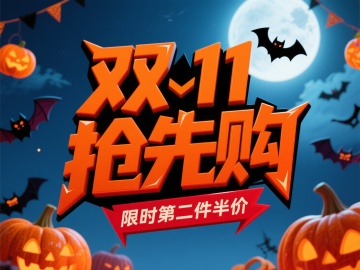 软3D风格,甜品元素环绕,充气感字体搭配卡通蛋糕与糖果,营造甜美可爱、喜庆趣味的双11美食狂欢氛围。
