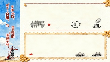 左侧1/3为天空蓝竖向标题栏,竖排写“主题与方向”,粗粉笔体,赭石红色,标题右侧有一条赭石红色手绘竖线。右侧2/3区域用赭石红色虚线分隔为上下两个区块,均为米白色背景。上区块内有钢笔手写体文字“聚焦近百年来西北边疆地区发展记忆,挖掘‘同心共建家园、携手共促发展’的鲜活故事,涵盖开拓、建设、创新全历程”,文字旁配有手绘五角星和古水渠小图标。下区块同样为米白色背景,分3点用钢笔手写体书写“1.开拓时期:边疆地区和平稳定、秩序建立故事(如‘边疆协作发展’‘建设队伍进疆’)2.建设时期:区域生产建设、基础工程故事(如‘建设队伍拓荒边疆’‘边疆能源基地开发’)3.新时代:边疆民生改善、文化交融故事(如‘边疆乡村发展’‘各群体共庆传统节日’)”,每点前有一个赭石红色手绘圆点,分别对应配工具铲、工程帽、同心结小图标,其中“开拓时期”“建设时期”“新时代”这些关键时期短语带有浅棕黄色背景色。所有文字整体带有3度倾斜角,线条具有手绘的手抖质感。