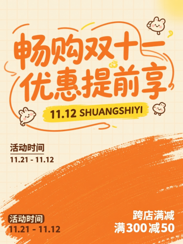 孟菲斯风格撞色设计,扁平风几何图形点缀,大字风突出“双11狂欢大促”,印刷风元素强化促销感,满减信息清晰醒目。