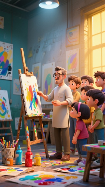 软3D风格的可爱小画家,毛发生长质感与像素风肖像相映成趣,温馨柔和的室内场景洋溢着童真与舒适感。
