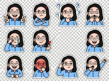 可爱感插画风表情包,卡通描边设计,融合emoji元素与平面设计手法,展现丰富情绪表达。