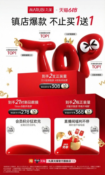 喜庆促销氛围,卡通人物互动,618购物节主题。