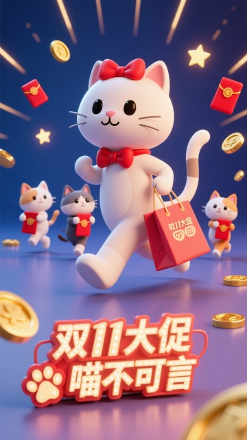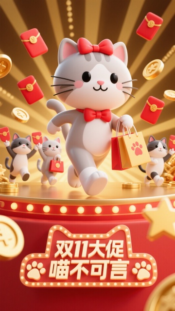 萌趣猫咪们在红包金币中,开启双十一大促 “喵不可言” 狂欢