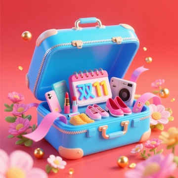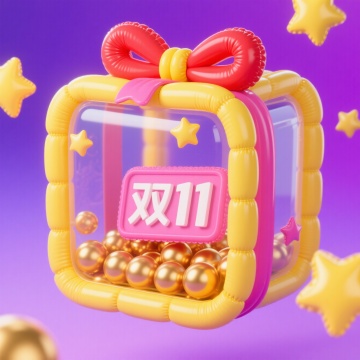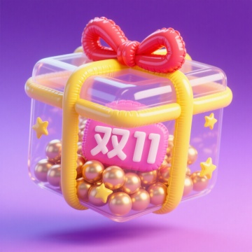 3D充气风礼盒爆裂出彩色数字气球,融合波普艺术色彩与重拟物质感,传递双11促销的喜庆与趣味感。