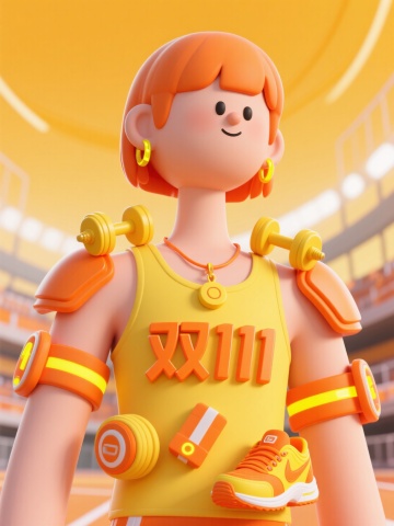 人物身着橙黄运动装,印 “双 11”,搭配运动配饰,洋溢活力购物氛围