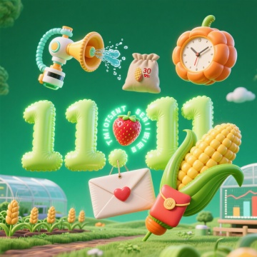 绿色充气 “1111” 数字,搭配农具、果蔬等,营造双 11 农场风促销狂欢氛围