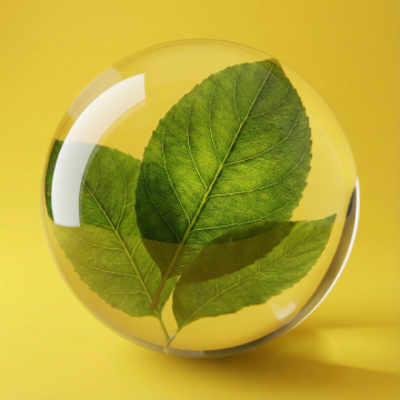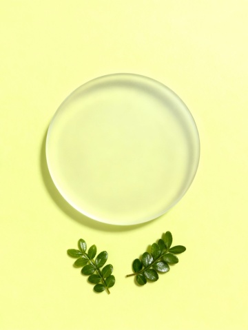 清新淡雅的玻璃风设计,轻拟物手法呈现透明圆盘与绿叶,搭配柔和黄底,营造简约主义的清爽舒适感。