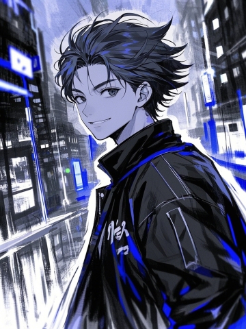 甜美清新的动漫风插画,少女身着水手服,回眸一笑,尽显青春活力。