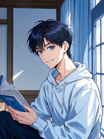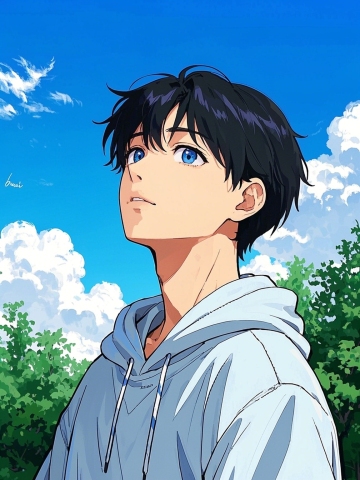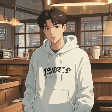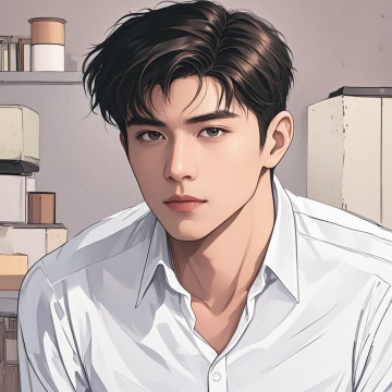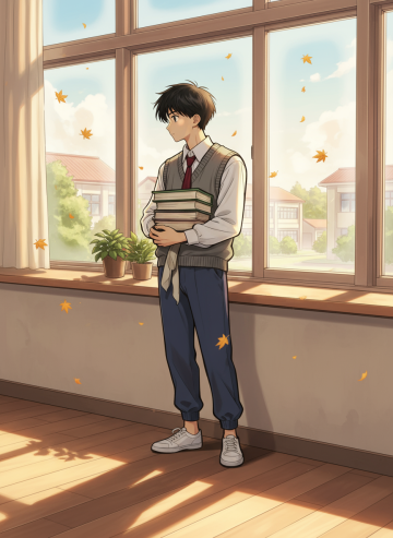 清新柔和的动漫风插画,白色衬衫少年,简约背景,温暖色调。