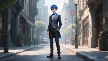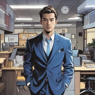 像素风肖像与3D角色在现代展厅相遇,商务感十足的场景融合虚拟现实光影,展现科技与艺术的碰撞。