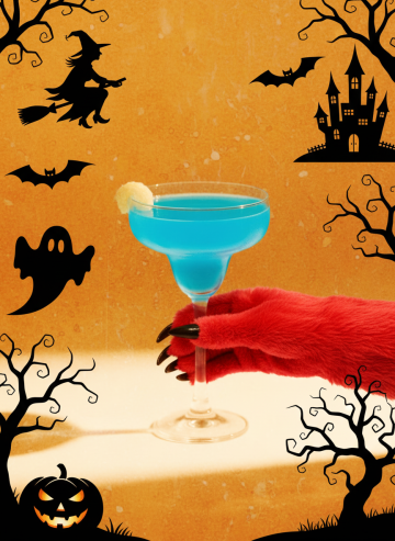 插画风扁平设计,拟人南瓜戴巫师帽,搭配蝙蝠与魔法药水,大字风“HAPPY HALLOWEEN”充满卡通感与喜庆趣味,营造欢乐万圣节氛围。