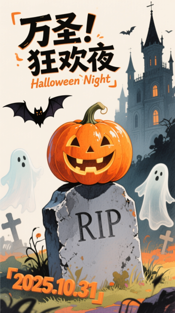 万圣节狂欢|萌系幽灵复古卡通风格海报