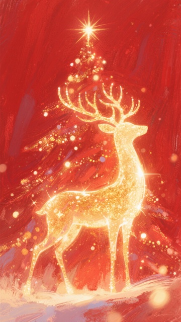 玻璃风圣诞树搭配鎏金霓虹鹿,3D光影交织,梦幻奢华中透出温馨优雅,节日氛围唯美动人。