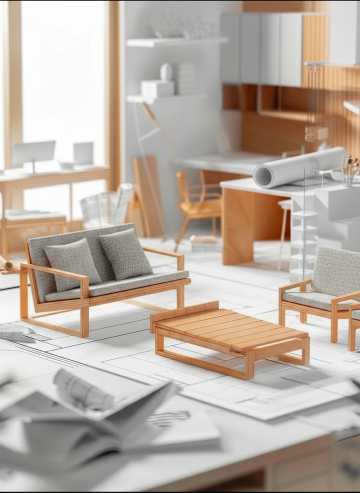现代感与木雕风融合的3D微缩艺术空间,简约主义设计,清透光影营造舒适氛围,呈现未来家居生活美学。