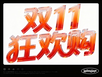 字体标志“双 11 狂欢购”,创意字体设计,C4D风格电商字体设计“双 11 狂欢购”,字体有三层立体边框,外边框有玻璃层,底色是白色,线条流畅且富有艺术感,将字体进行抽象变形,创造出独特的节奏和动感,给人以强烈的视觉冲击,红色背景,3D渲染风格,画面具有冲击力,标题下方红色3D横幅“限时优惠·全场五折”,海报底部有一行小字,还有一些社交媒体信息,右下角还有一个椭圆形标志,内含衬线字体“jgdmgjapt”