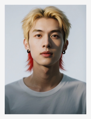 美妆博主的万圣节妆容,带有:红色眼尾下至晕染,红色美瞳,脸颊点缀细小血痕、擦伤,鼻梁上有一个创可贴