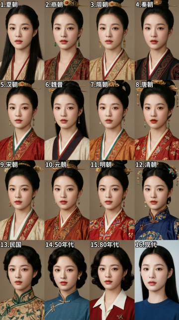 古典与现代交融,工笔风细腻勾勒,刺绣与鎏金点缀,展现中华千年服饰演变,融合中式美学与复古优雅,尽显民族风情与奢华质感。