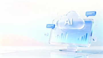 未来感与科技感交融的软3D微缩艺术,清透玻璃风设计搭配柔和蓝白配色,AI云与盾牌符号象征智能守护,整体呈现轻盈灵动的视觉体验。