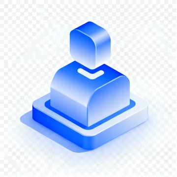 参考上传图片的蓝色渐变立体风格,生成一个税务退税相关的立体图标,图标下方有白色薄底座,整体简洁几何设计,带有轻微阴影和高光效果,透明背景