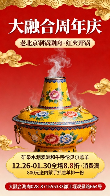 国潮风融合鎏金金属质感,重拟物手法呈现热辣鸭脖火锅,中式复古元素与喜庆红金配色交织,营造浓厚节日氛围。